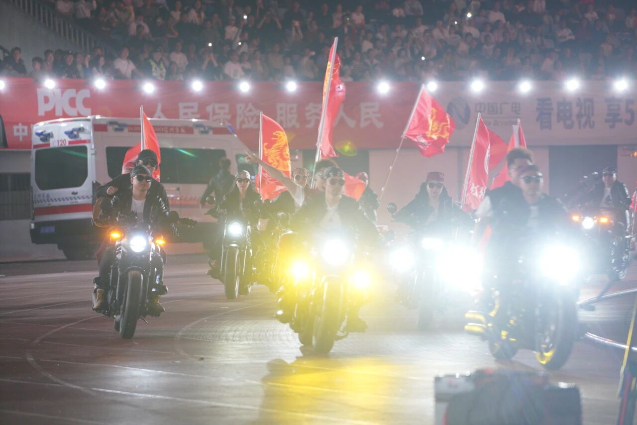 紧接着,哈雷摩托引擎的轰鸣声震撼登场,歌手骑乘亮相,以经典摇滚《We Will Rock You》为引,融入达州球迷专属助威曲。1000名演员与球迷联动,队形从看台延伸至球场中央,引发全场大合唱,直接将现场氛围推至沸点。